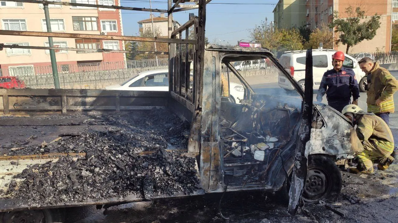 Sultangazi'de seyir halindeki kamyonet küle döndü