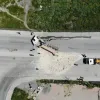 Kaza sonrası hafriyatların yola dökülmesi nedeniyle yol trafiğe kapatıldı. Polis ekiplerinin güvenlik önlemi aldığı kaza sonrası çalışmalar sürüyor.Kaza nedeniyle devrilen hafriyat kamyonu sonrası kapatılan yol drone ile havadan görüntülendi.