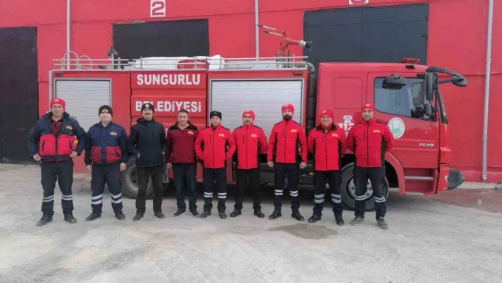 Sungurlu Belediyesi, Hatay'da yaşanan büyük depremin ardından bölgeye itfaiye aracı ile birlikte arama kurtarma çalışmalarına katılmak üzere 10 itfaiye personeli sevk etti.