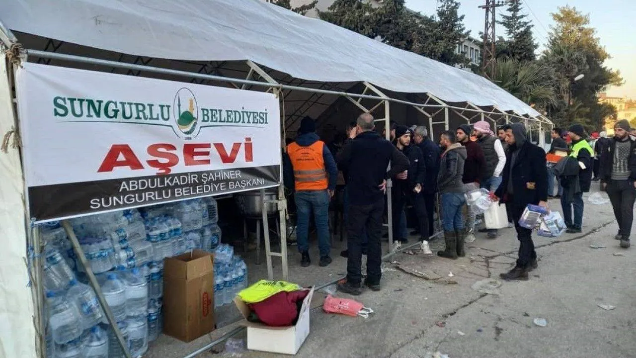 Kahramanmaraş merkezli deprem felaketi sonrası bütün imkanlarını seferber eden Sungurlu Belediyesi, Hatay'da depremzedelerin yiyecek ihtiyacını karşılamak üzere 10 bin kişilik sıcak yemek çıkarma kapasitesine sahip aşevi kurdu.