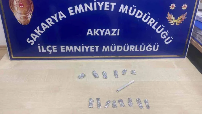 Sakarya'nın Akyazı ilçesinde bekçilerin şüphesi üzerine sorgulanan şahsın üzerinden 14 parça uyuşturucu madde ele geçirildi. Emniyetteki işlemleri sonrasında adliyeye sevk edilen şüpheli tutuklanarak cezaevine gönderildi.