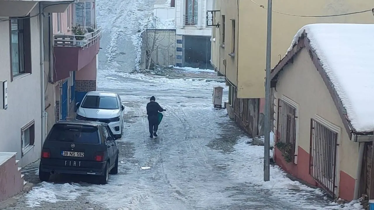 İlçede buz tutmuş rampalı sokağa giren 2 araç, bir üst caddeye çıkmaya çalıştığı sırada metrelerce kaydı. Kayan araçların zorlu mücadelesi anbean kameralara yansırken, zaman zaman iteklenmeye çalışılan araçlar metrelerce kaydı. Kimi araçlar zorlu buz maratonunu başarıyla tamamlarken, kimi araçlar da geri dönmek zorunda kaldı.