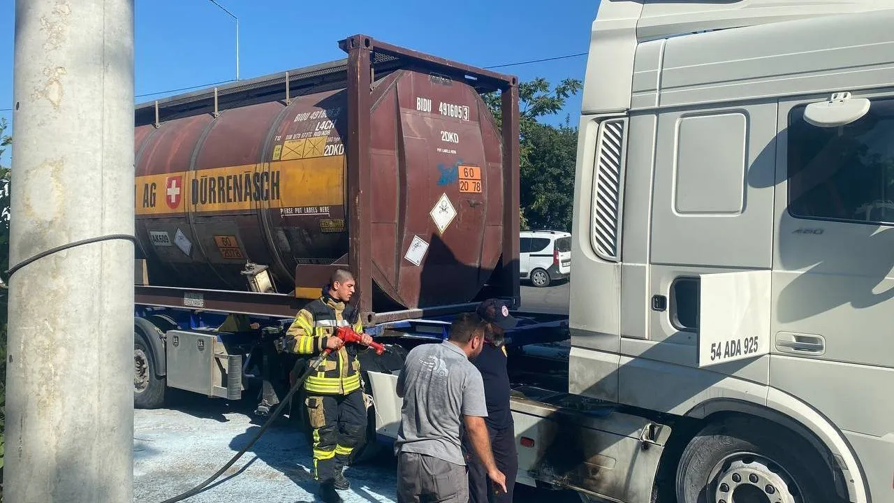 Kocaeli'nin Gebze ilçesinde seyir halindeki kimyasal yüklü tırın kupa kısmında yangın çıktı. Sürücünün dikkati sayesinde facianın önüne geçildi.