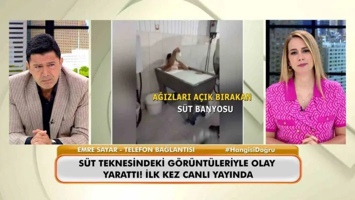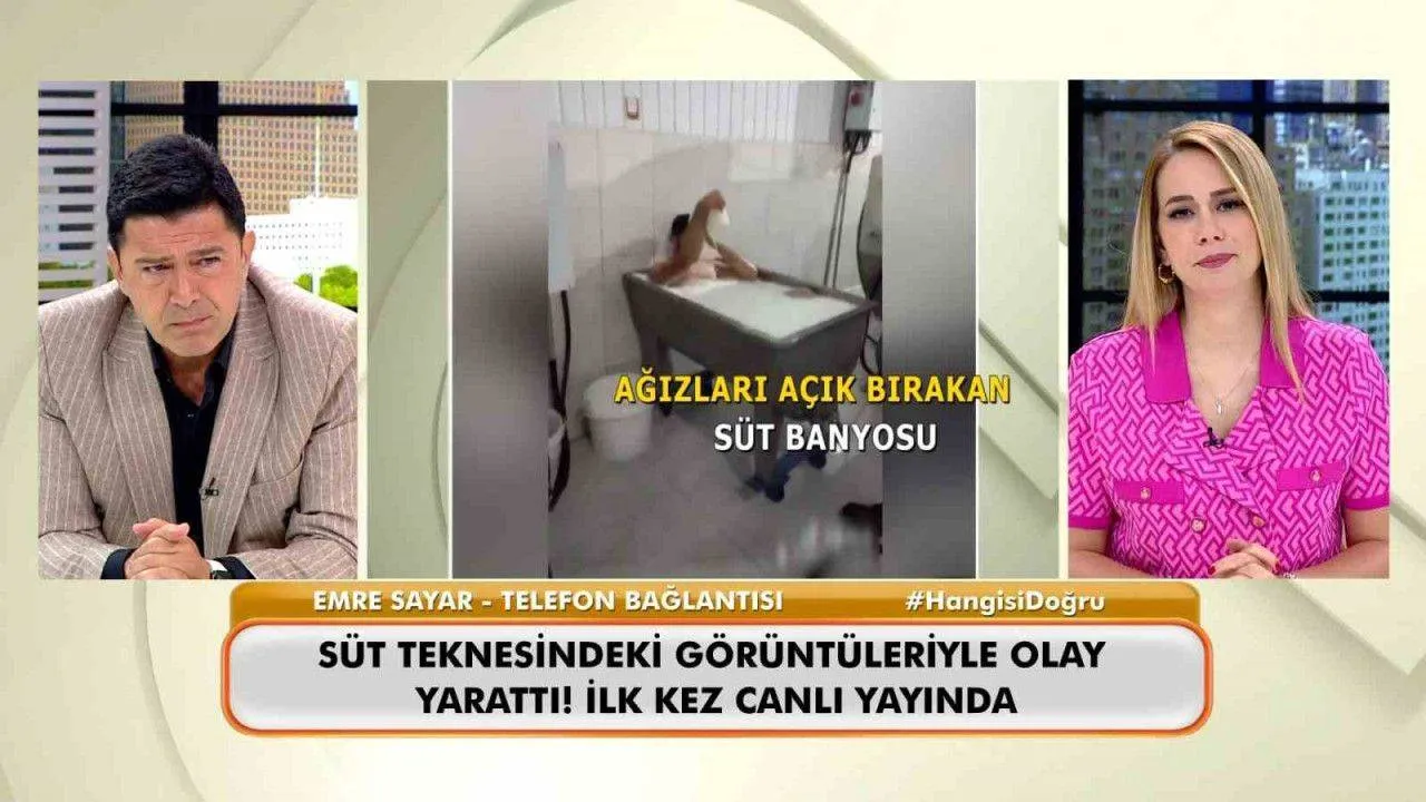 Türkiye, günlerce o işçiyi konuşmuştu. Konya’nın Meram ilçesinde süt toplama merkezinde bulunan kazanda süt banyosu yaptığı suçlamasıyla 6 gün cezaevinde kalan Emre Sayar, Kanal D ekranlarında hafta içi her gün yayınlanan, sunuculuğunu Hakan Ural ve Nur Tuğba Namlı’nın yaptığı Neler oluyor Hayatta programına telefonla bağlandı. Sayar, sosyal medya aracılığıyla kendisine hakaret ettiğini tespit ettiği 70 kişiye dava açtığını söyleyerek iftiraya uğradığını öne sürdü.