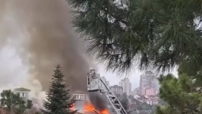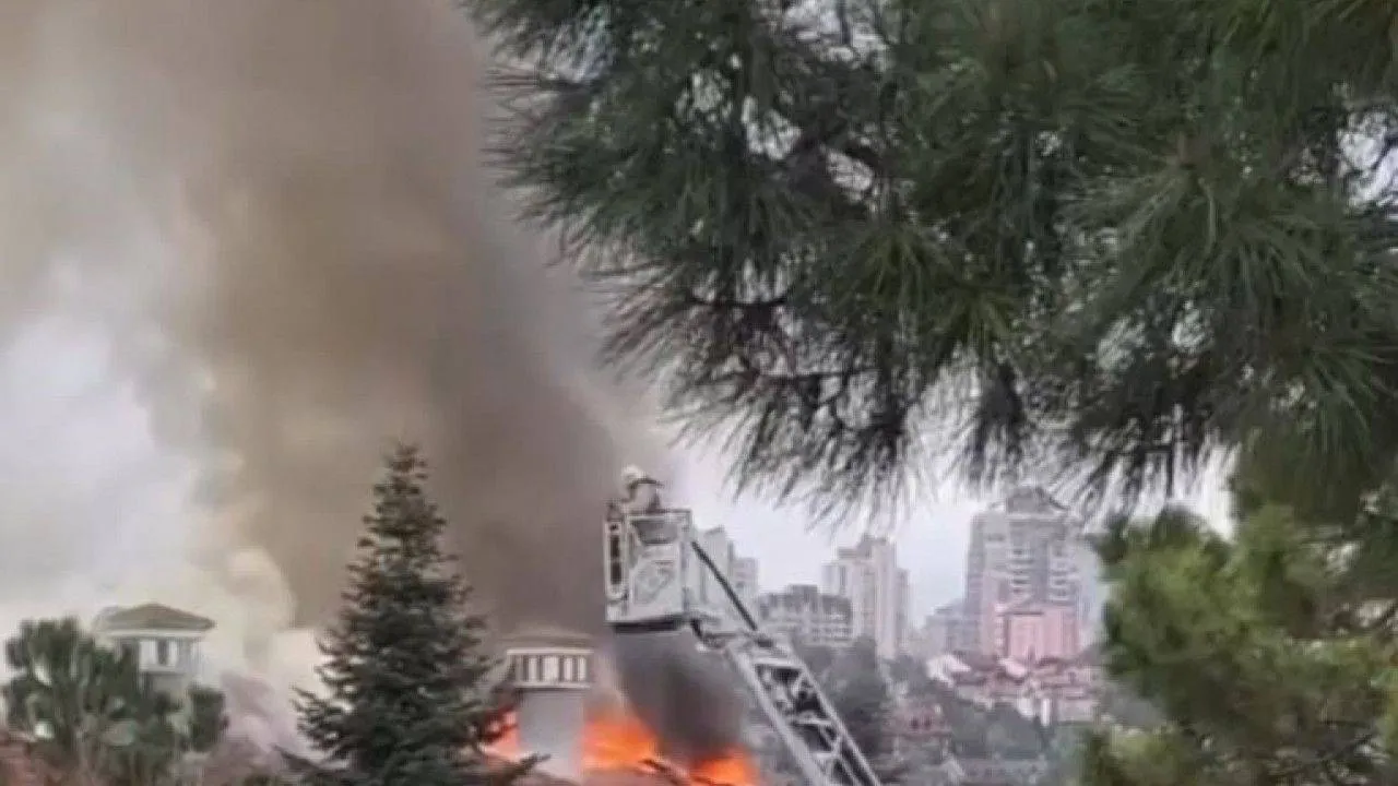 Başakşehir’de tadilat halinde olan villanın çatı katında bulunan izolasyon malzemeleri alev alev yandı. Yangın anı cep telefonu kameraları ile görüntülendi.