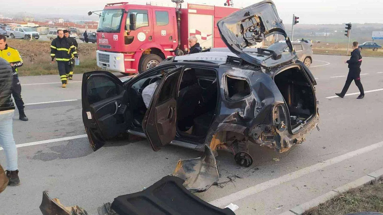 Tekirdağ’da meydana gelen kazada takla atıp hurdaya dönen otomobilde bulunan kişiler burunları bile kanamadan çıktı.