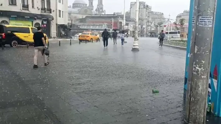 Taksim'de sabah saatlerinde etkili olan sağanak yağış, vatandaşlara zor anlar yaşattı.