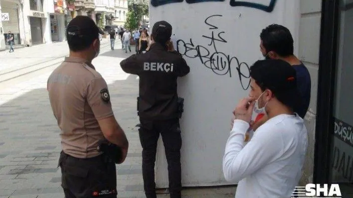 Taksim’de 4 günlük sokağa çıkma kısıtlamasının bitmesiyle beraber oluşan kalabalık sonrası bekçiler denetim yaptı. Sosyal mesafe kuralına uymayan iki genci önce uyaran ekipler, kurala uymamaları üzerine gençlere ceza yazdı.
