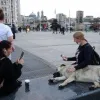 Taksim Meydanı gezmeye gelen Bosna-Hersekli turistler burada bulunan sevimli köpeğe yoğun ilgi gösterdi. Bir turist yediği dondurmadan köpeğe de ikram etti.