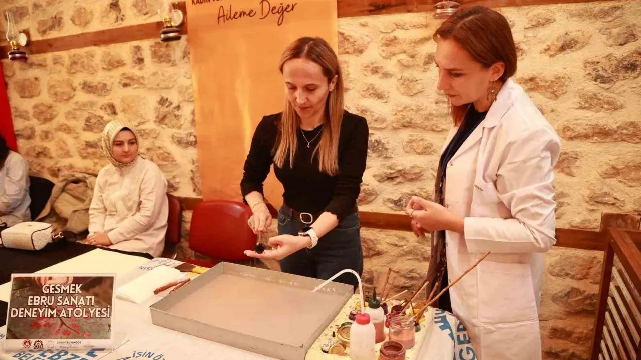 Gebze Belediyesi Kadın ve Aile Hizmetleri Müdürlüğüne bağlı GESMEK kursiyerleri, tarihi su dolabı yapısında düzenlenen ebru etkinliğinde bir araya geldi.