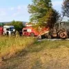 Tarlada ağaç sökümü yapan iş makinesi alev alev yandı