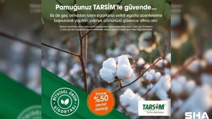 TARSİM, üreticilere yüzde 50 Devlet prim desteğinden faydalanmaları ve 'pamuk' ürününü zamanında sigortalatmaları konusunda uyarıda bulundu.
