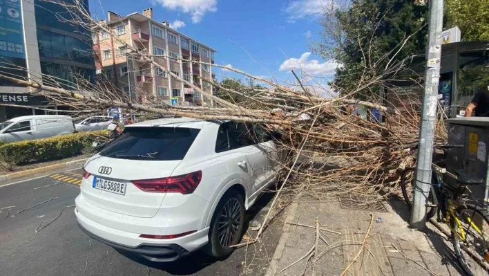 Tatile geldi, otomobilin üstüne ağaç devrildi