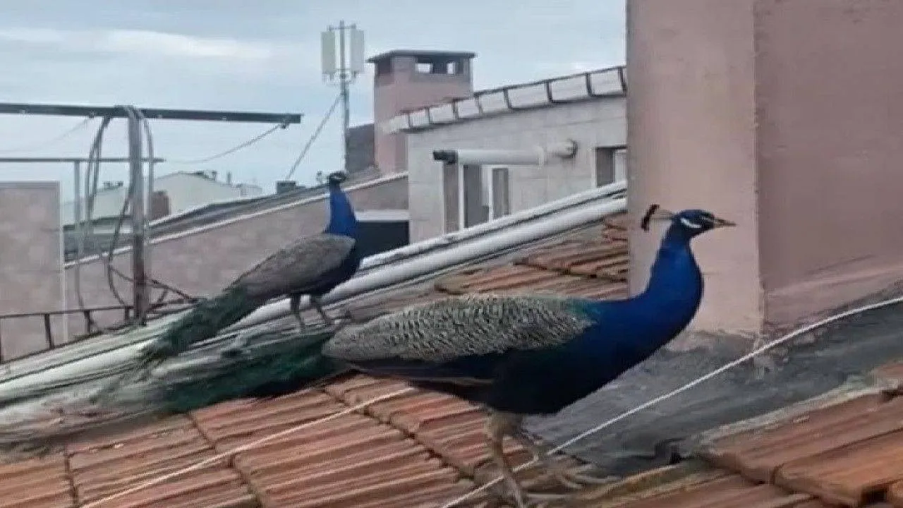 Tavus kuşları çatılarda geziyor, görenler şaşırıp kalıyor