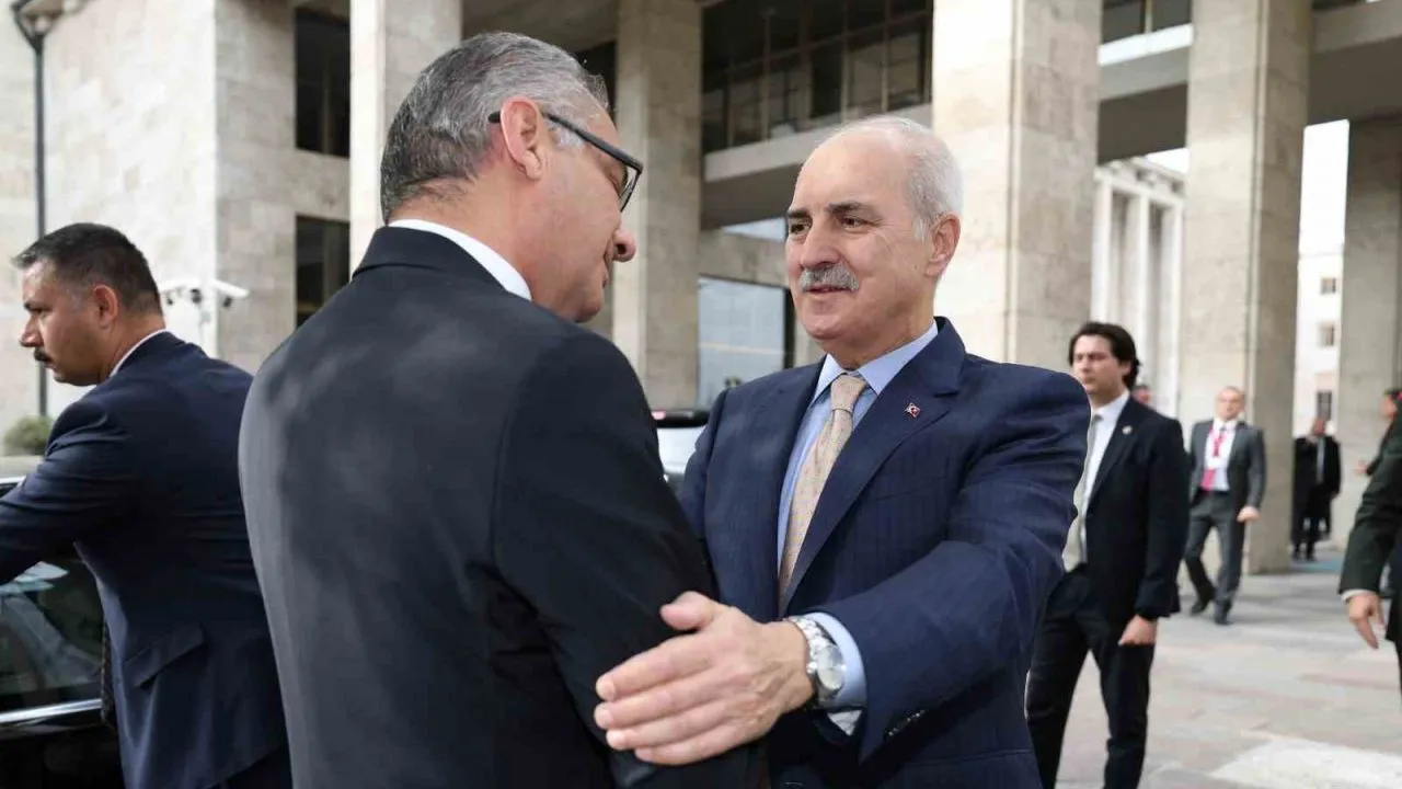 TBMM Başkanı Kurtulmuş, makamında KKTC Cumhurbaşkanı Tufan Erhürman ile bir araya geldi. Kurtulmuş, Meclis’e gelişinde karşıladığı Cumhurbaşkanı Erhürman ile Türkiye ve KKTC bayrakları önünde el sıkıştı. Daha sonra Kurtulmuş ve Erhürman, baş başa görüşme gerçekleştirdi. Numan Kurtulmuş, Azerbaycan-Gürcistan sınırında düşen askeri kargo uçağında kahraman Mehmetçiklerin şehit olmasından dolayı fevkalade büyük bir acı içerisinde olduklarını belirterek, şehitlere Allah’tan rahmet, ailelerine ve Türk milletine sabır diledi. Kurtulmuş, Erhürman’ın ilk resmi ziyaretini Türkiye’ye yapmasının önemli olduğunu belirterek, kendisini TBMM’de ağırlamaktan memnuniyet duyduklarını söyledi. Seçimdeki başarısından dolayı Erhürman’ı tebrik ederek görevinde başarılar dileyen Kurtulmuş, Türkiye ve KKTC’nin ele vererek adadaki Türk halkının haklı davasını bütün uluslararası platformlarda savunmaya devam edeceklerini vurguladı. KKTC ile Türkiye arasındaki ilişkilerin müstesna olduğunu ifade eden Kurtulmuş, bu ilişkilerin şimdiye kadar olgunlaşarak bugünlere kadar geldiğini belirtti. Kurtulmuş, KKTC’nin böylesine önemli bir devlet haline gelene kadar nice badirelerden geçtiğini, nice büyük zulümlerle karşılaştığını, Kıbrıs Türk halkının yok olma tehlikesiyle nasıl karşı karşıya kaldığını bildiklerini ve yakın tarihin Kıbrıs Türkleri bakımından acı sayfalarla dolu olduğunu söyledi. Kurtulmuş, Enosis planları çerçevesinde Kıbrıs’ı tamamıyla Türklerden uzak bir ada haline getirmek istenilen bir yerde yayılmacı ve son derece maksimalist taleplerin artık geçerli olmadığının gün yüzüne çıktığını vurgulayarak, "Bu süreç içerisinde Kıbrıs Barış Harekatımızla birlikte Kıbrıs Türkünün kurtarılması sonrasındaki süreçte hem Kıbrıs Türk halkı hem Türkiye Cumhuriyeti Devleti, son derece yapıcı bir şekilde iki toplumun birlikte var olması için mücadele etmiştir. Hatta ortaya konulan Annan Planı gibi planlar başta olmak üzere birçok plana evet demiş olmasına rağmen maalesef hayır diyen taraf ödüllendirilmiştir. Güney’deki Rum kesimi, Avrupa Birliği’nin tam üyesi olarak kabul edilmiş ve hep şımartılmış, hep öne çıkartılmış ve Kıbrıs Türklerinin üzerinde bir siyasal baskı unsuru haline gelmesine göz yumulmuştur. Ama çok şükür büyük mücadelelerle, büyük fedakarlıklarla 50 yıl artık geride kaldı. Kuzey Kıbrıs Türk Cumhuriyeti de bütün uzuvlarıyla tam manasıyla mükemmel bir devlet haline gelmiştir. Bu devletin varlığının, gücünün uluslararası alanda da tanıtılması en önemli önceliklerimizden birisidir" dedi.