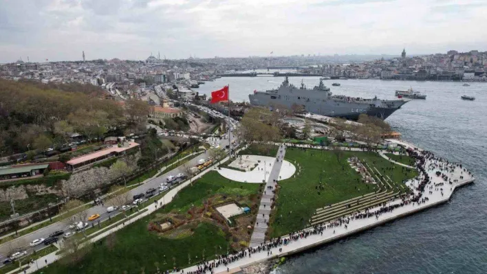 TCG Anadolu gemisini görmek isteyen vatandaşlar 2 km kuyruk oluşturdu