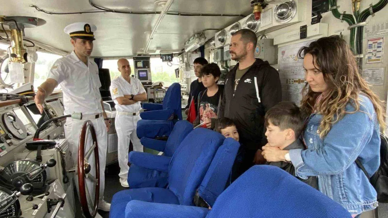 Oğluyla gemiyi gezmeye gelen Emrah Akdemir, "Bugün 19 Mayıs Atatürk’ü Anma, Gençlik ve Spor Bayramımız. Gurbet gemimizi ziyarete geldik. Sağ olsunlar gençlerimizin görmesi için gemimizi getirmişler. Biz de oğlumla beraber gemiyi gezdik" diye konuştu.