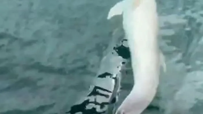 Tekirdağ Süleymanpaşa açıklarında denize açılan bir tekneyi bir süre boyunca takip eden yunus, cep telefonu kamerasıyla görüntülendi.