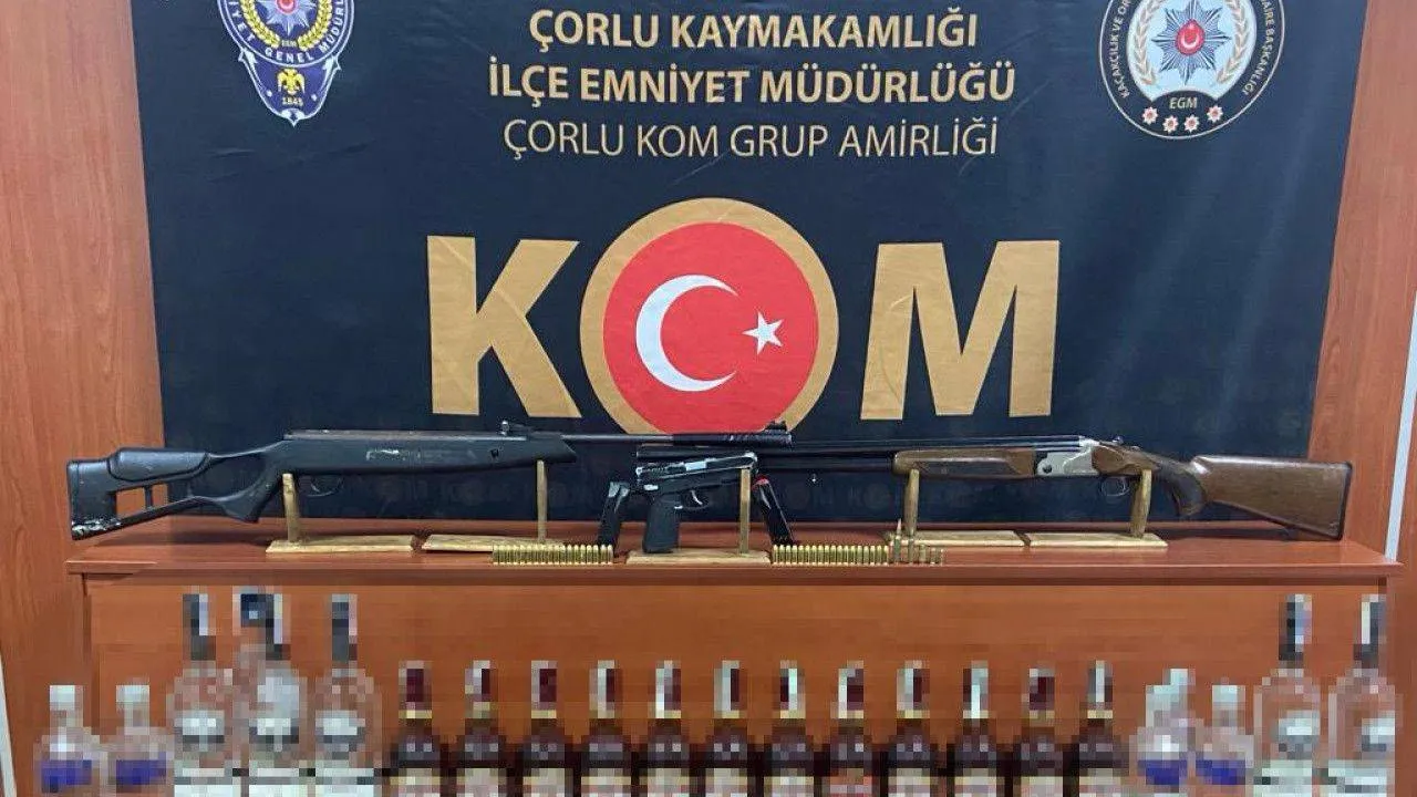 Tekirdağ İl Emniyet Müdürlüğü Kaçakçılık ve Organize Suçlarla Mücadele Şube Müdürlüğü ekiplerince kaçakçılık suçlarının önlenmesine yönelik çalışmalar sürüyor. Yapılan çalışmalarda Kapaklı ilçesinde 2 ikamet, 1 işyeri ve 1 araçta yapılan aramalarda, 143 adet farklı marka ve ebatlarda şişe içerisinde gümrük kaçağı/ sahte bandrollü alkollü içki, 1 adet tabanca ve bu tabancaya ait 2 adet şarjör, 41 adet farklı ebatlarda fişek, 1 adet yiv ve set bulunan ruhsatsız havalı tüfek ele geçirildi.