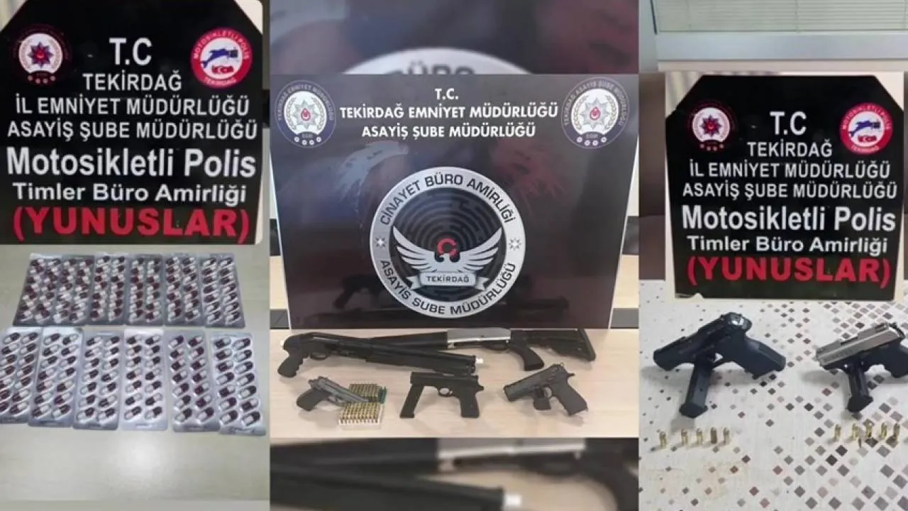 Tekirdağ İl Emniyet Müdürlüğü Motorsikletli Polis Timleri (Yunuslar) görevlilerince suç işlenmesinin önlenmesi ve işlenmiş olan suçların faillerinin yakalanmasına yönelik çalışmalar devam ediyor. Son 20 gün içerisinde yapılan çalışmalar sonucu, 45 adet ruhsatsız tabanca 21 adet av tüfeği, 17 adet kurusıkı tabanca, 1 adet havalı tabanca, 1 adet havalı tüfek 1 adet balistik yelek ele geçirildi.