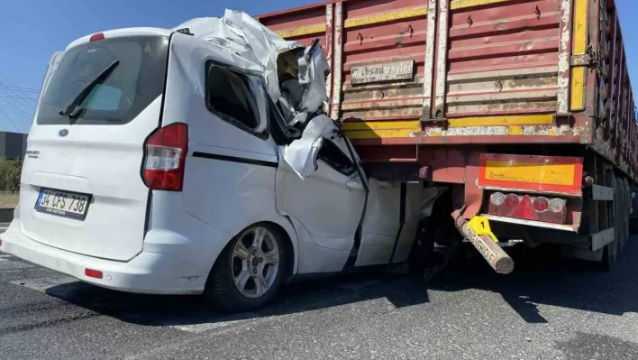 Tekirdağ Ergene'de kontrolden çıkan hafif ticari araç, tırın altına girdi. Araçta sıkışan 1 kişi hayatını kaybederken, gözyaşlarına hakim olamayan yaralı sürücüyü, itfaiye eri teselli ederek ambulansa kadar eşlik etti.
