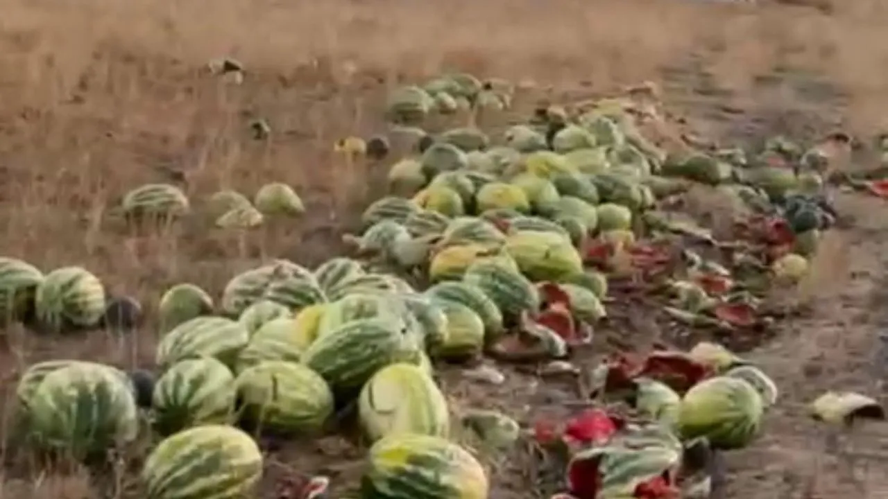 Tekirdağ'da israf tepkisi: Karpuzlar yola saçıldı