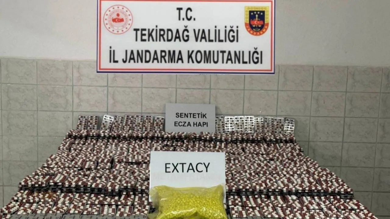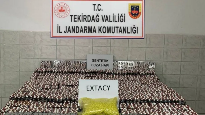 Tekirdağ İl Jandarma Komutanlığı’nın planlı istihbarat faaliyeti kapsamında yürütülen çalışmalar sonucunda Çorlu ilçesi Önerler Mahallesi’nde A.Y. ve K.D. isimli şahısların kullandığı araç, yol kontrol noktasında durduruldu. Araç içerisinde ve şüphelilerin üzerlerinde yapılan aramalarda toplam 28 bin adet sentetik ecza, 5 bin adet extacy, suçtan elde edildiği değerlendirilen 545 TL para ile 2 adet cep telefonu ele geçirildi.