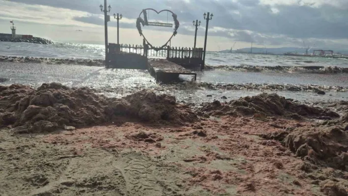 Tekirdağ'da lodos kıyıyı vurdu, kızıl yosunlar sahili kapladı