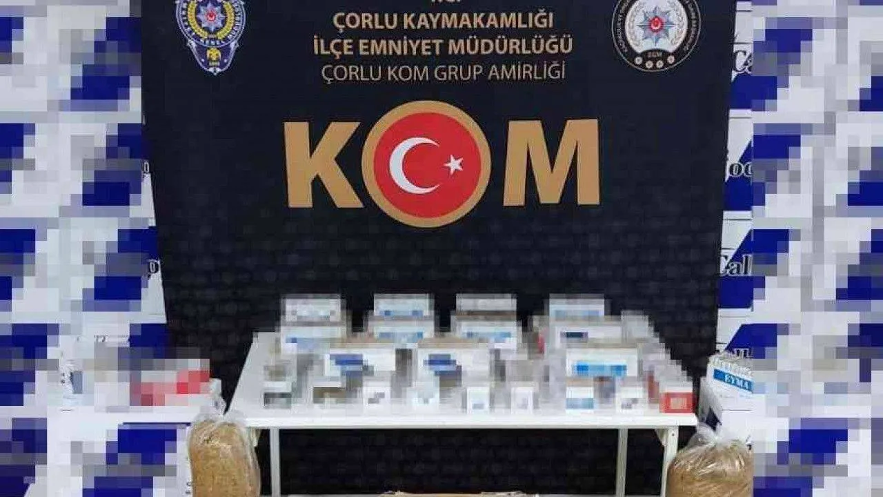 Tekirdağ’ın Çorlu ilçesinde düzenlenen operasyonda milyonlarca makaron ve tütün ele geçirildi.