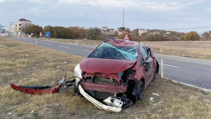 Tekirdağ'da kavşaktan çıkış yapan araca çarpıp takla atan otomobilin sürücüsü yaralandı.