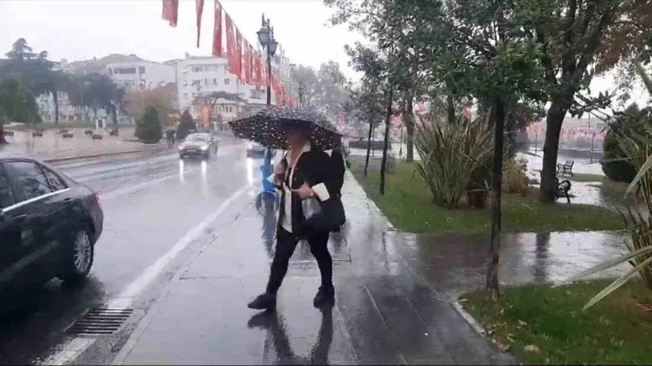 Meteoroloji Genel Müdürlüğü tarafından yapılan uyarıların ardından Tekirdağ’ın Süleymanpaşa ilçesinde sağanak yağış başladı. Yağmura hazırlıksız yakalanan vatandaşlar iş merkezlerinin girişlerinde ve çatı altlarında beklerken, hazırlıklı çıkan vatandaşlar ise şemsiyelerini açıp yoluna devam etti. Öte yandan, kuraklık endişesini duyan çiftçiler ise yağan yağmurla birlikte rahat nefes aldı.