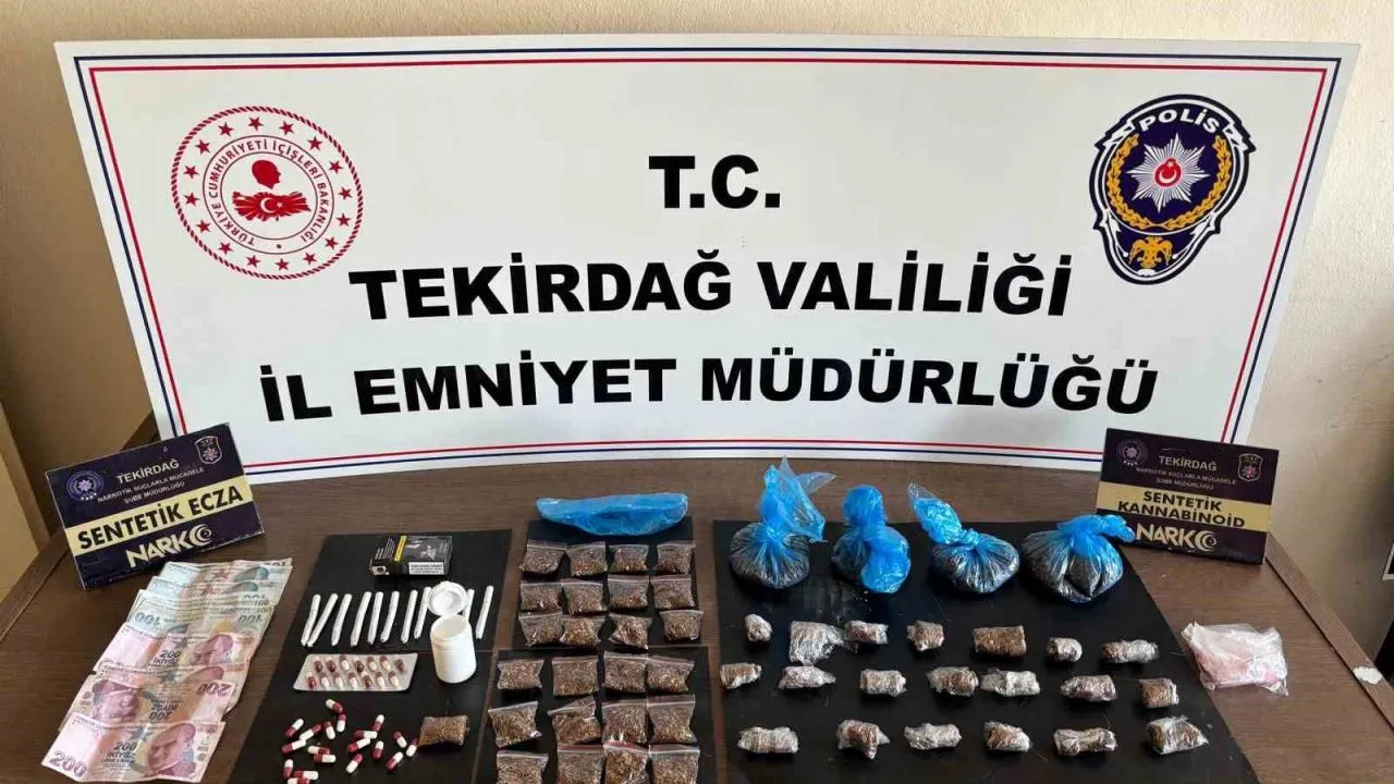 Tekirdağ İl Emniyet Müdürlüğü Narkotik Suçlarla Mücadele Şube Müdürlüğü ekipleri, uyuşturucu madde ticaretine yönelik yürüttükleri çalışmalar kapsamında Çorlu ilçesinde 4 farklı adrese eş zamanlı operasyon düzenledi. Operasyonlarda toplam 281,05 gram sentetik kannabinoid (bonzai) maddesi, 33 adet sentetik ecza hap ve uyuşturucu madde ticaretinden elde edildiği değerlendirilen bin 600 TL ele geçirildi. Gözaltına alınan E.A., B.Ş. ve A.Ç. isimli şüpheliler, emniyetteki işlemlerinin ardından sevk edildikleri adli makamlarca tutuklanarak cezaevine gönderildi.