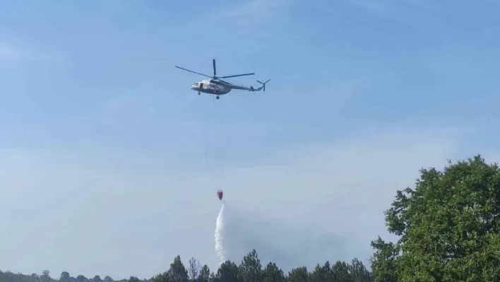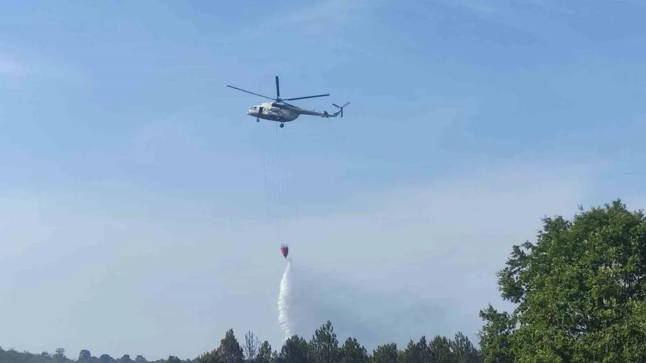 Tekirdağ'daki yangında hava desteği: Helikopter ile müdahale ediliyor