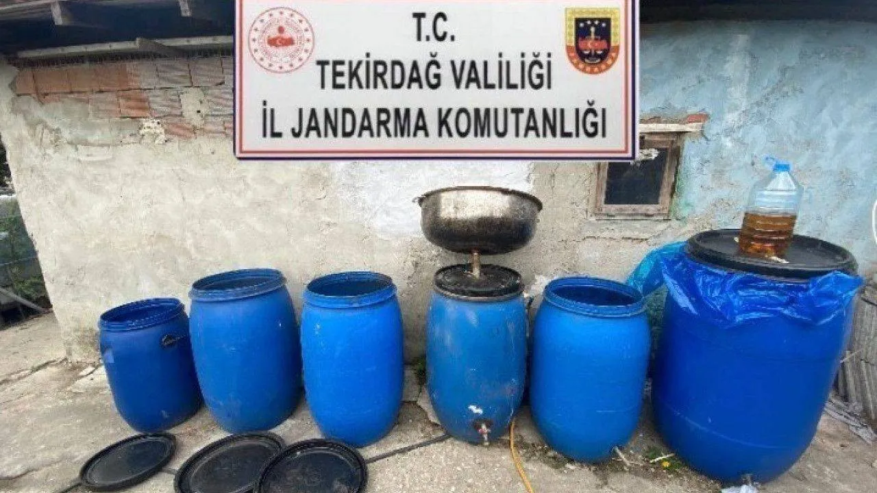 Tekirdağ İl Jandarma Komutanlığı ekiplerinin Tekirdağ'ın Ergene ilçesinde gerçekleştirdikleri operasyonda kaçak içki ve içki yapımında kullanılan düzenekler ele geçirildi.