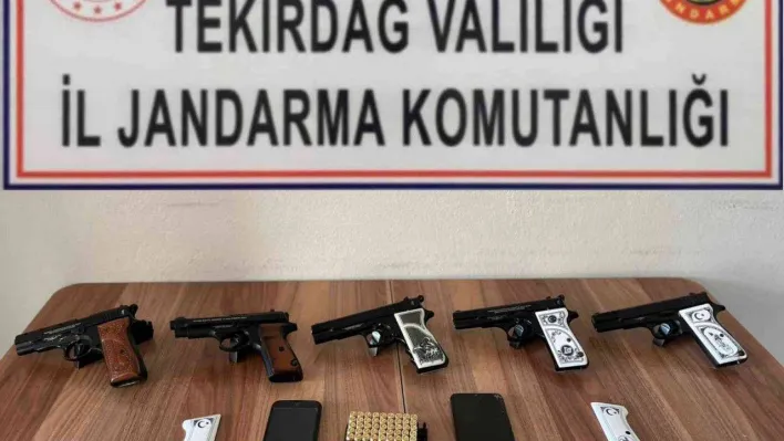 Tekirdağ İl Jandarma Komutanlığı ekiplerinin yaptığı operasyonda durdurulan araç içerisinde 5 adet ruhsatsız tabanca ve tabancalara ait fişekler ele geçirildi.