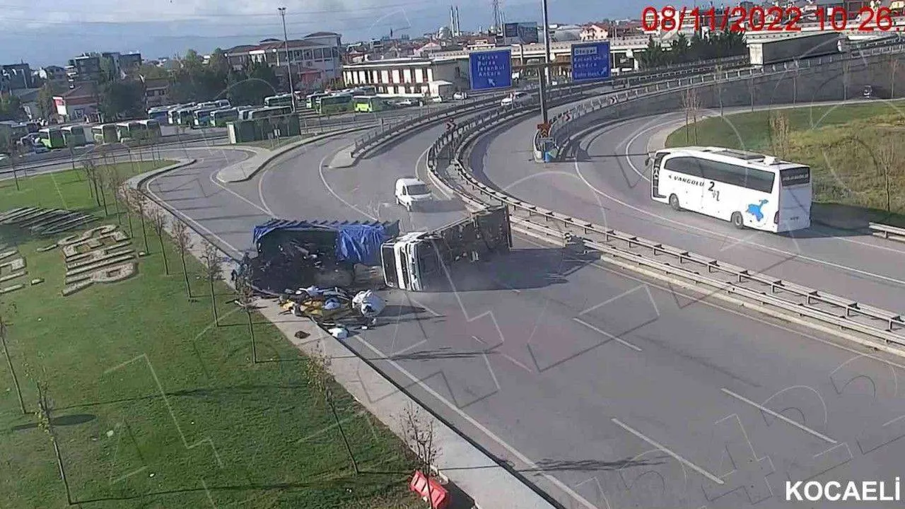 TEM Otoyolu Kocaeli geçişinde 8 Kasım'da hurda yüklü kamyon devrilmişi. Kaza anının kamera görüntüsü ortaya çıktı.