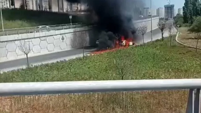 Tem Otoyolu Bahçeşehir Bağlantı yolunda seyir halinde olan bir otomobil alev aldı. Kısa sürede alev topuna dönen otomobili itfaiye ekipleri müdahale ederek söndürürken o anlar cep telefonu kamerası ile görüntülendi.