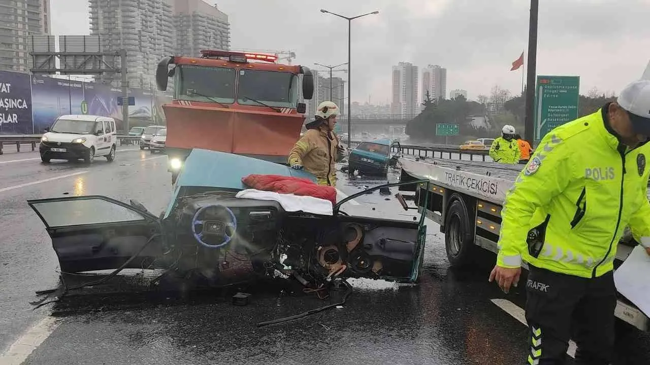 TEM Otoyolu'nda kaza yapan Tofaş marka otomobil ikiye bölündü. Kazada otomobildeki 2 kişi ağır yaralandı.