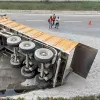 TEM Otoyolu’nun Kocaeli geçişinde kontrolden çıkan mıcır yüklü kamyon devrildi. Sürücü yaralanırken, kapanan yol aracın kaldırılması ile açıldı.