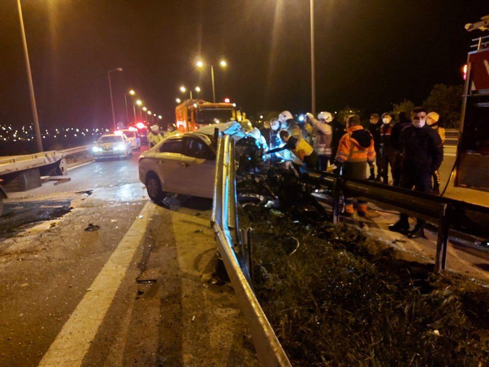 TEM Otoyolunda sürücüsünün direksiyon hâkimiyetini kaybetmesi sonucu bariyerlere giren otomobil hurda yığınına döndü. Hurda yığınına dönen otomobilin sürücüsünün ise hayatının kaybettiği öğrenildi.