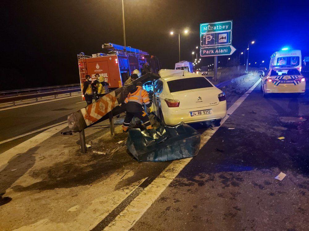 Kaza saat 03.45’te Büyükçekmece Kumburgaz Mevkii TEM Otoyolunda meydana geldi. Edinilen bilgiye göre B.B. idaresindeki 34 RB 9312 idaresindeki otomobil, sürücünün direksiyon hâkimiyetini kaybetmesi sonucu bariyerlere saplandı.