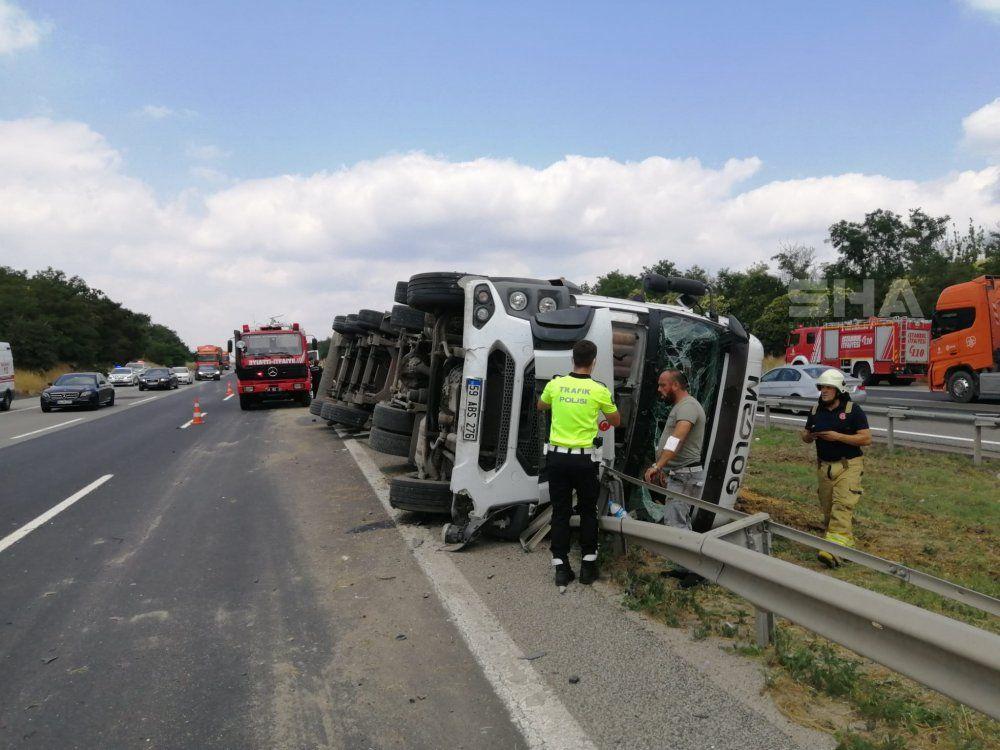 Kaza, öğle saatlerinde TEM otoyolu Çerkezköy gişeleri geçtikten 5 km sonra İstanbul istikametinde meydana geldi. Edinilen bilgilere göre, seyir halindeki tır, frenlerinin boşalması sonucu aynı istikamette seyir halinde bulunan gurbetçi bir aileye ait özel otomobile çarptı. Tır daha sonra yol ortasında bulunan bariyerlere çarparak yan yattı. Kaza sebebiyle yolun tam ortasında yan yatan özel otomobil içerisinde bulunan 6 kişi çeşitli yerlerinden yaralandı. Kazaya sebep olan tırın sürücüsü kazayı yara almadan atlattı. Yaralılar olay yerine gelen ambulanslarla Silivri Devlet Hastanesine kaldırılarak tedavi altına alındı.