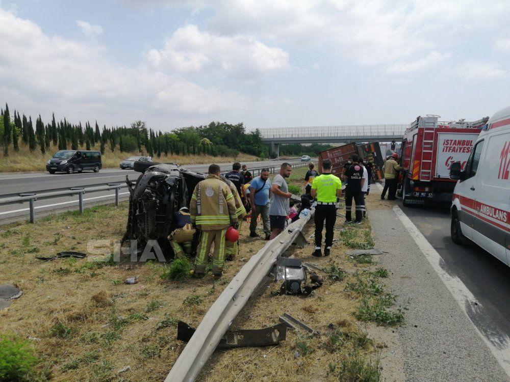 TEM Otoyolunda meydana gelen kazada aynı araçta bulunan gurbetçi aileden 6 kişi yaralandı.