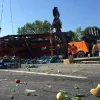 TEM'de kamyon devrildi Tonlarca meyve ve sebze yolla döküldü