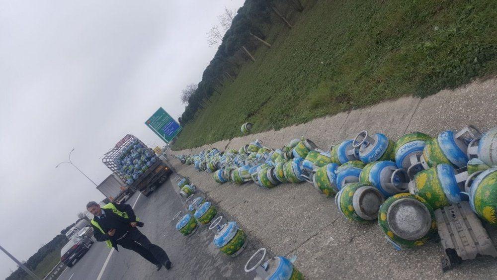 TEM otoyolu üzerinde meydana gelen kazada tüp yüklü kamyonun karıştığı kazada tüpler yola savruldu. Kazada ölen yada yaralanan olmadı