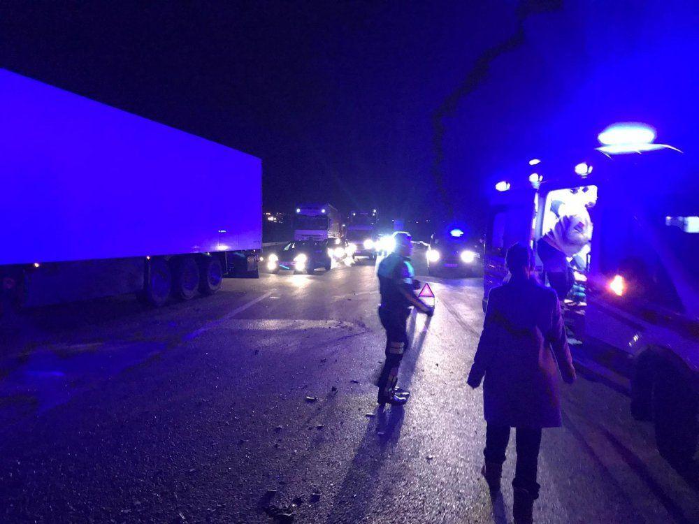 Kaza sebebiyle araç trafiği bir süre tek şeritten sağlandı.