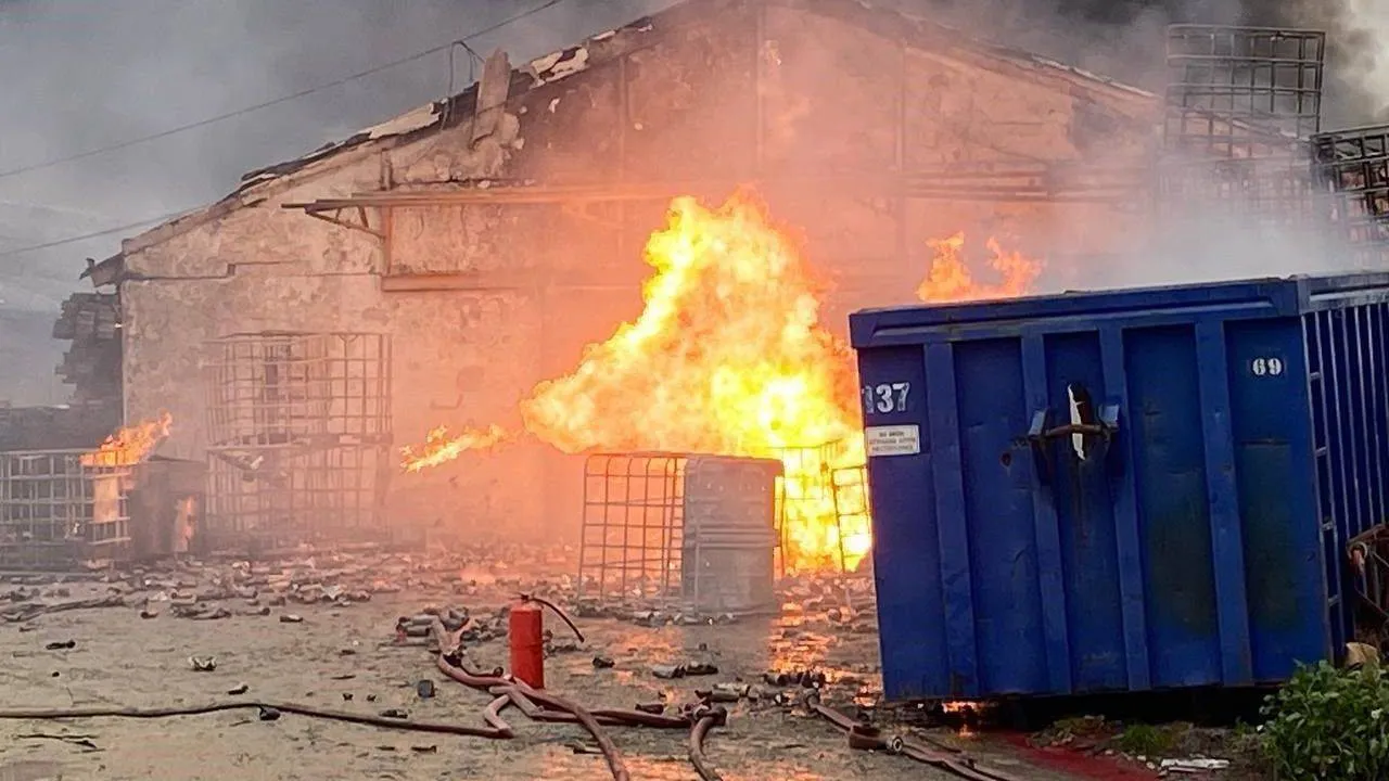 Kocaeli’nin Gebze ilçesinde temizlik malzemesi deposunda çıkan yangında patlamalar devam ederken, ekiplerin müdahalesi sürüyor.