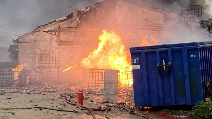 Kocaeli'nin Gebze ilçesinde temizlik malzemesi deposunda çıkan yangında patlamalar devam ederken, ekiplerin müdahalesi sürüyor.