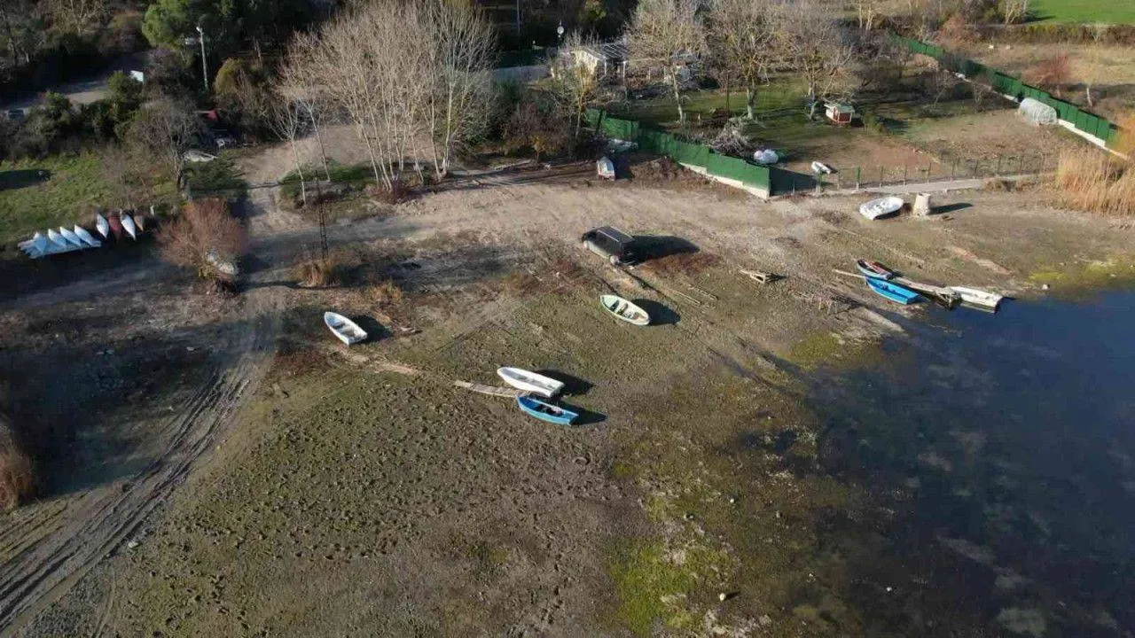 İstanbul’un önemli su kaynaklarından olan Terkos Gölü’nün doluluk oranı yüzde 38,5 seviyelerine kadar düştü. Kıyıdaki balıkçı tekneleri toprak yüzeye demirledi. Birkaç ay önce teknelerin yüzdüğü kıyıda suların çekilmesiyle birlikte, vatandaşlar otomobillerini park etti, aileleri ile yürüyüş yaptı. Suların çekilmesiyle birlikte suya açılan iskele de toprak üzerinde kaldı. Çekilen göl dron ile görüntülendi.
