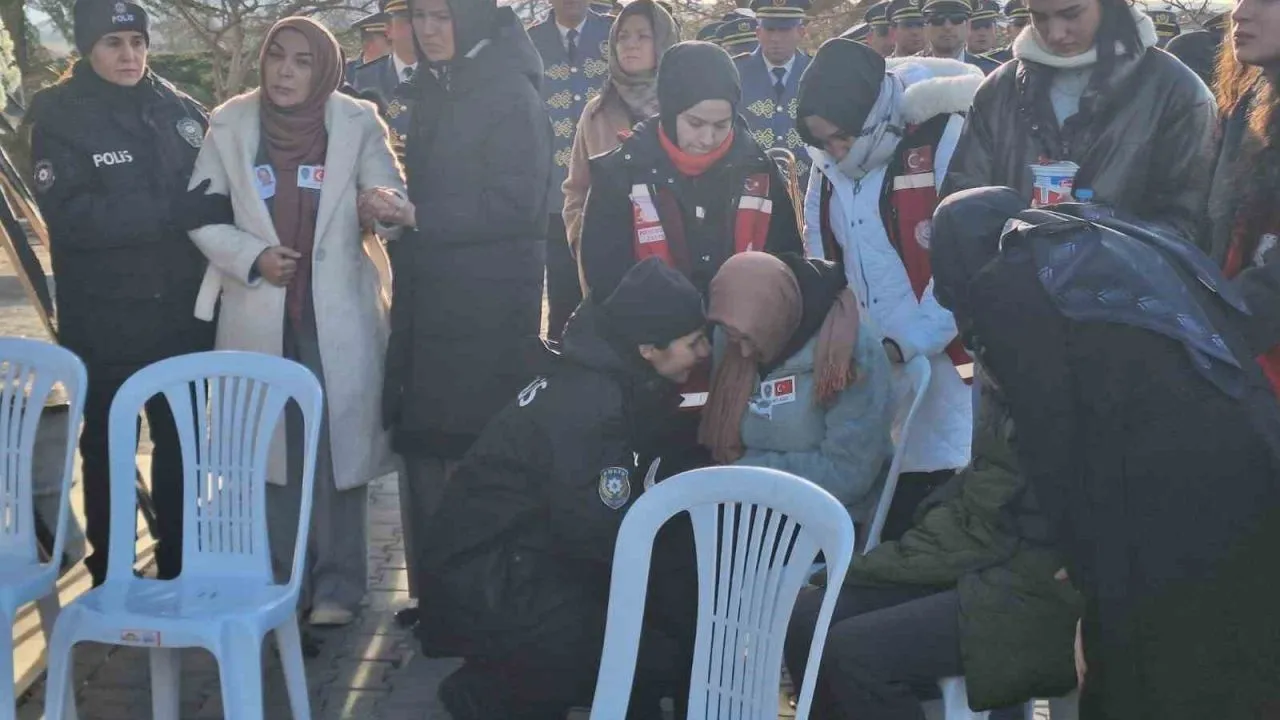Şehit Koçyiğit’in tabutunun başına gelen annesi, eşi ve kızları gözyaşlarını tutamadı. Şehidine veda ederken fenalaşan bazı aile fertlerine ise sağlık ekiplerince müdahale edildi.